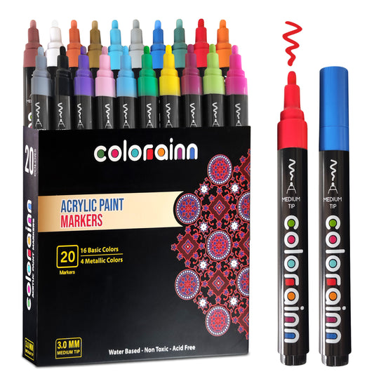 Discover Colorainn's Acrylic Paint Markers, ideal for adding intricate details and bold colors to your artwork. These markers offer high-pigment inks for intense, lasting color. Available in fine, medium, and broad tips, they support various techniques. Made from high-quality, non-toxic materials, Colorainn's markers ensure durable creations.